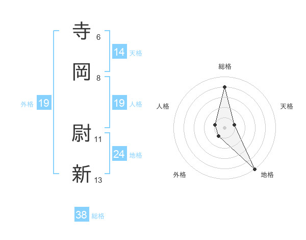 寺岡 尉新さんの総格は38画の4点!