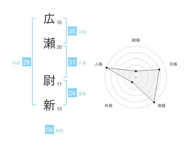 広瀬 尉新さんを姓名の画数から五運を鑑定