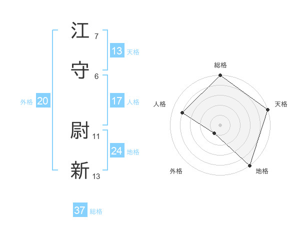 江守 尉新さんの天格は13画の5点!