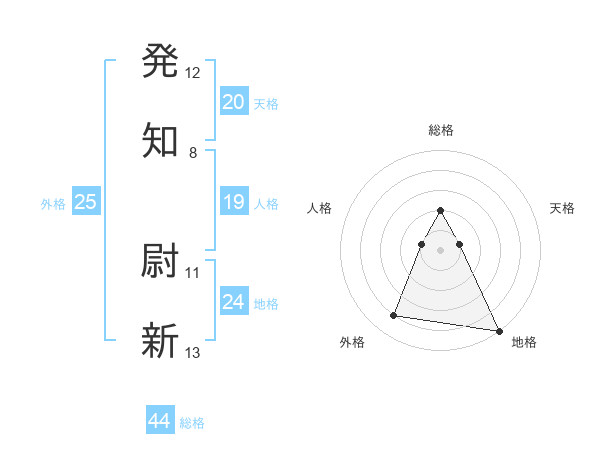 発知 尉新さんの総格は44画の2点!