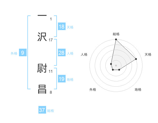 一沢 尉昌さんの総格は37画の5点!