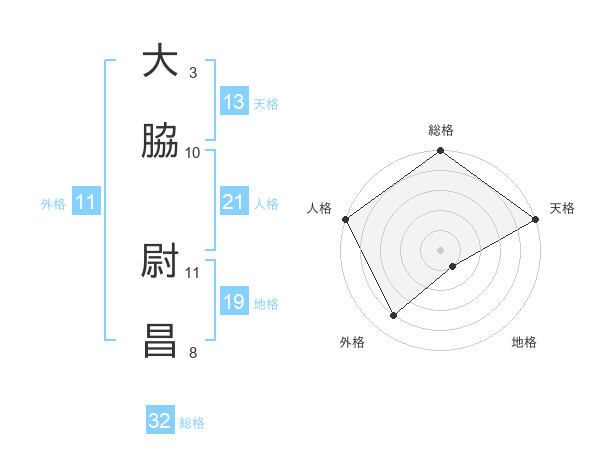大脇 尉昌さんを姓名の画数から五運を鑑定