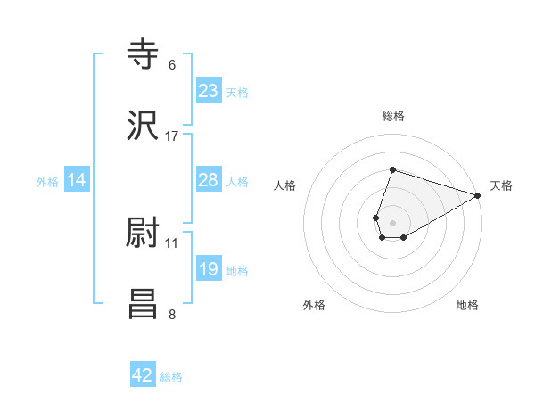 寺沢 尉昌さんの天格は23画の5点!