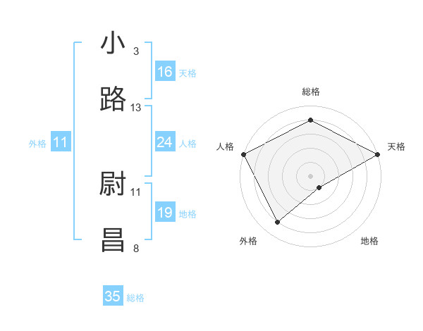 小路 尉昌さんの総格は35画の4点!