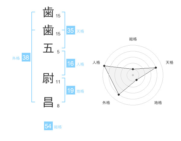 歯歯五 尉昌さんを姓名の画数から五運を鑑定