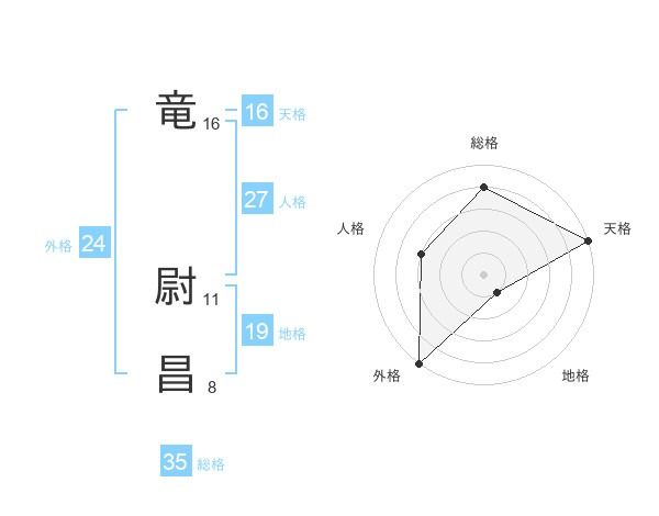 竜 尉昌さんの総格は35画の4点!