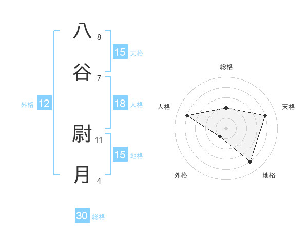 八谷 尉月さんの天格は15画の4点!
