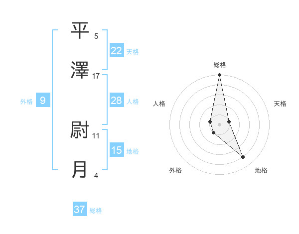 平澤 尉月さんを姓名の画数から五運を鑑定