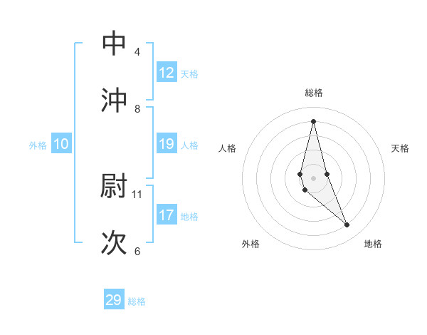 中沖 尉次さんを姓名の画数から五運を鑑定