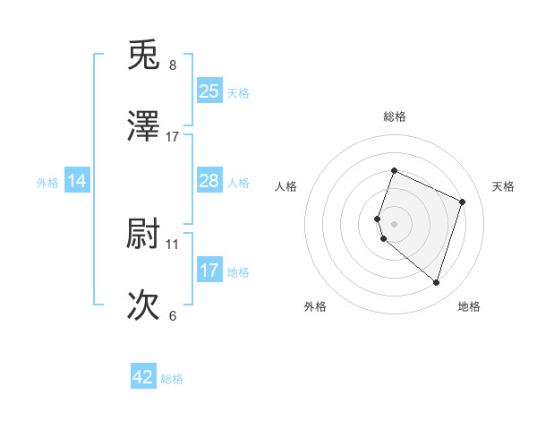 兎澤 尉次さんを姓名の画数から五運を鑑定