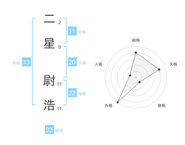 二星 尉浩さんの地格は22画の1点!