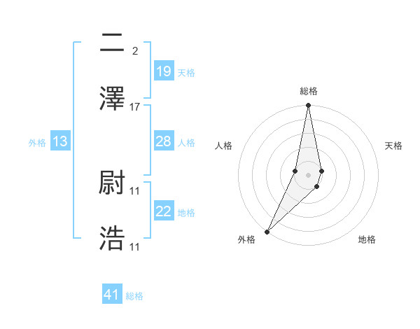二澤 尉浩さんの外格は13画の5点!
