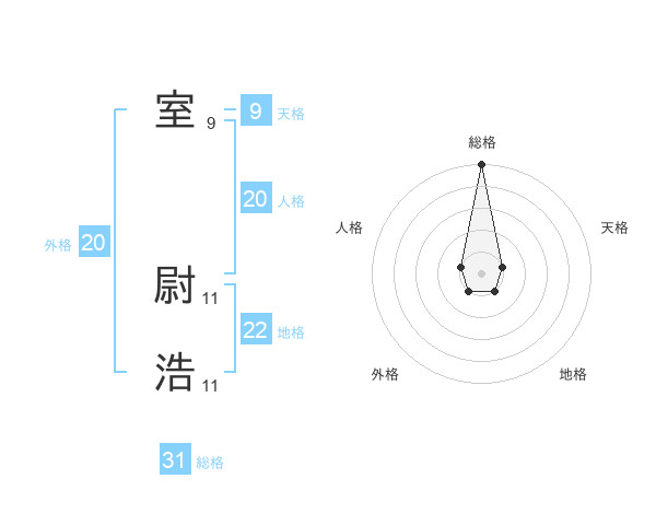 室 尉浩さんの総格は31画の5点!
