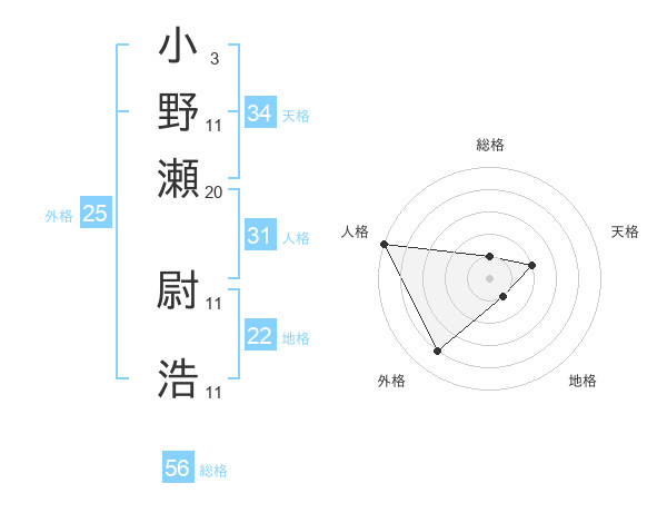 小野瀬 尉浩さんを姓名の画数から五運を鑑定