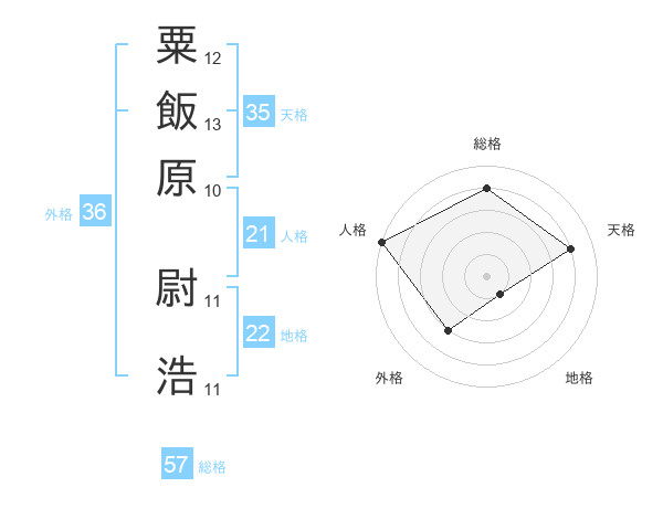粟飯原 尉浩さんを姓名の画数から五運を鑑定