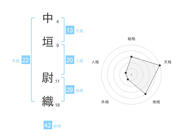 中垣 尉織さんを姓名の画数から五運を鑑定