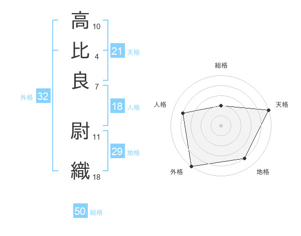 高比良 尉織さんの天格は21画の5点!