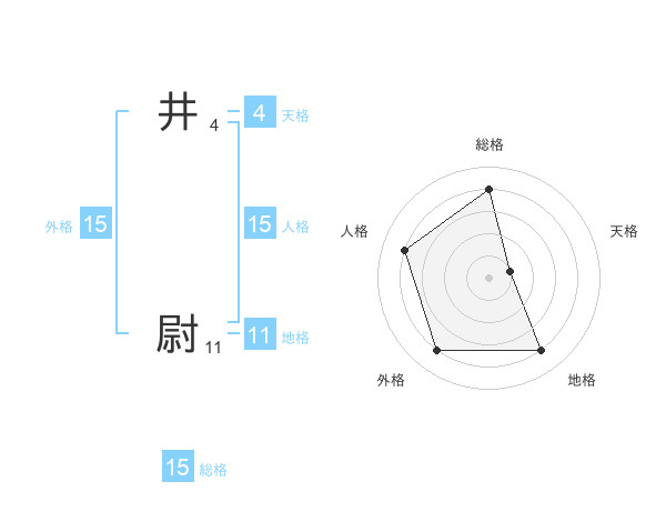 井 尉さんの総格は15画の4点!