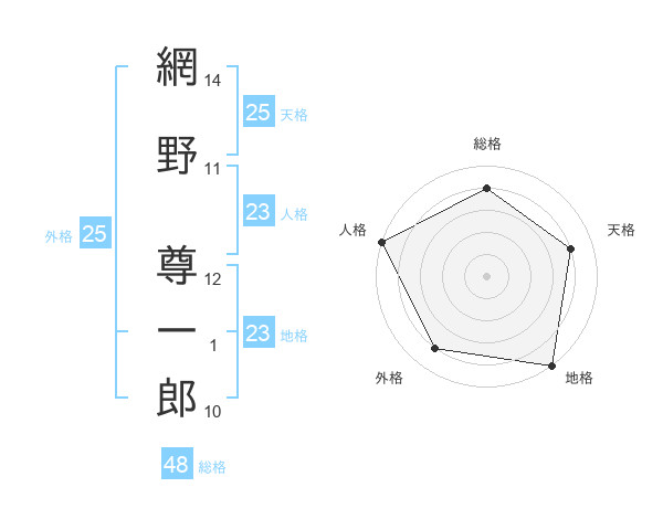 網野 尊一郎さんの地格は23画の5点!