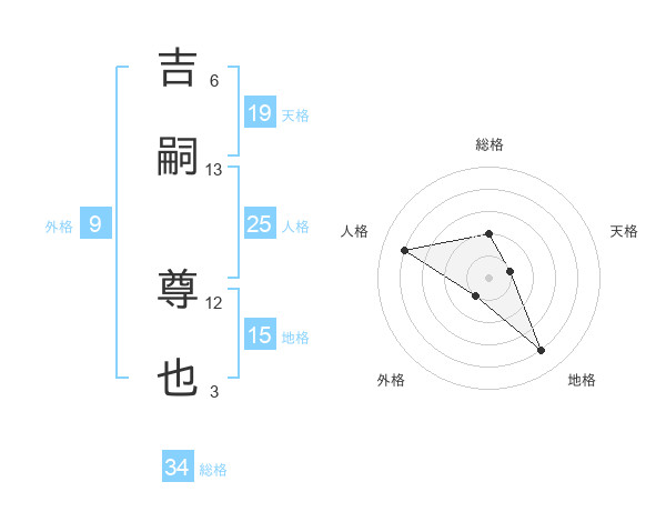 吉嗣 尊也さんを姓名の画数から五運を鑑定