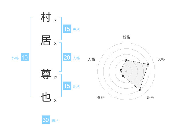 村居 尊也さんの天格は15画の4点!