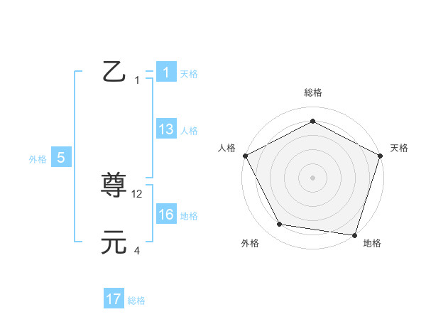 乙 尊元さんの総格は17画の4点!