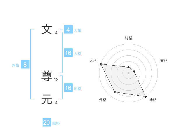 文 尊元さんの総格は20画の1点!