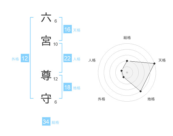 六宮 尊守さんを姓名の画数から五運を鑑定
