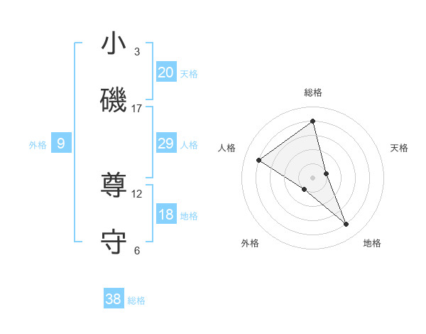 小磯 尊守さんを姓名の画数から五運を鑑定