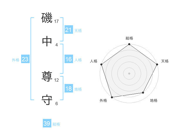 磯中 尊守さんの外格は23画の5点!