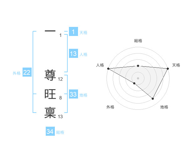 一 尊旺稟さんの外格は22画の1点!