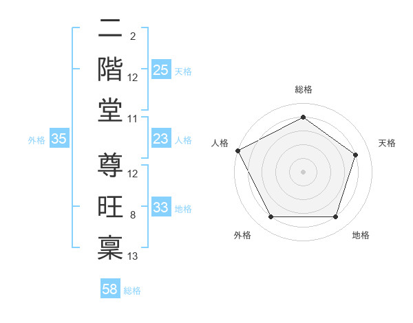 二階堂 尊旺稟さんを姓名の画数から五運を鑑定