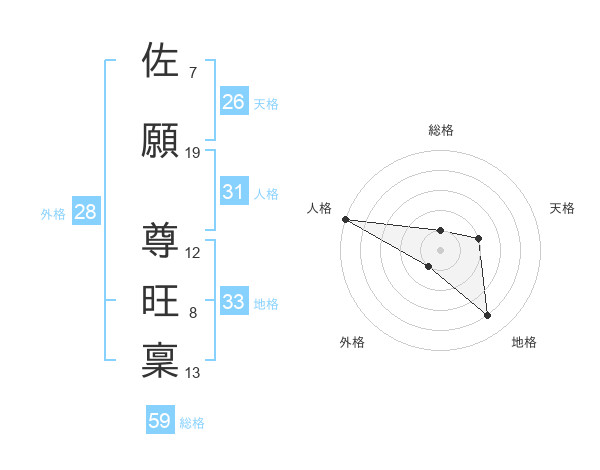 佐願 尊旺稟さんを姓名の画数から五運を鑑定