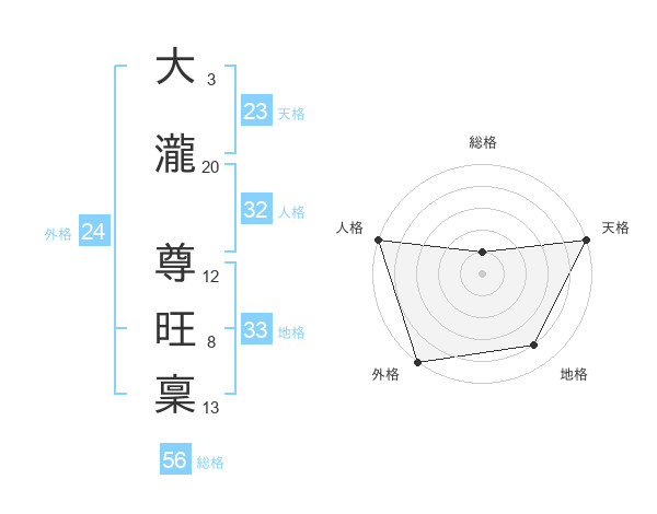 大瀧 尊旺稟さんの天格は23画の5点!