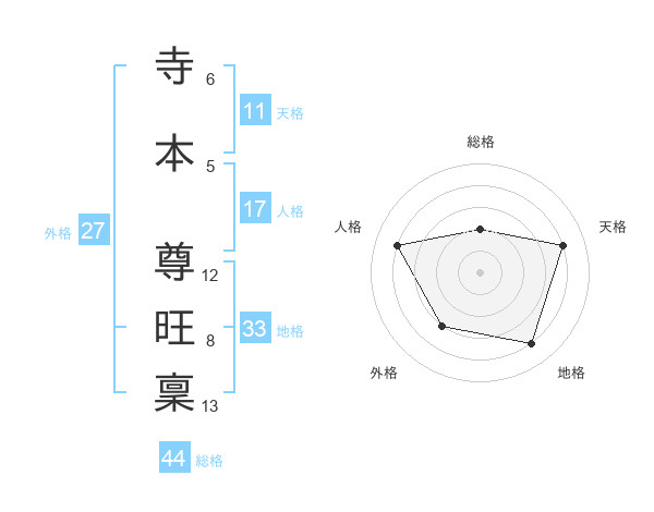 寺本 尊旺稟さんを姓名の画数から五運を鑑定