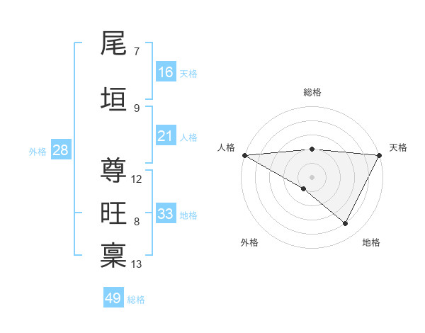 尾垣 尊旺稟さんを姓名の画数から五運を鑑定