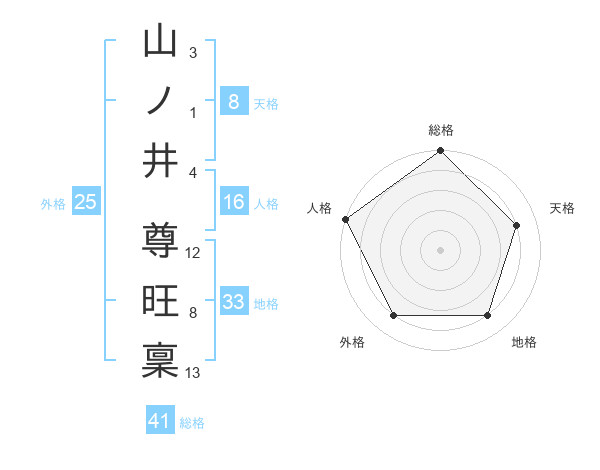 山ノ井 尊旺稟さんの外格は25画の4点!