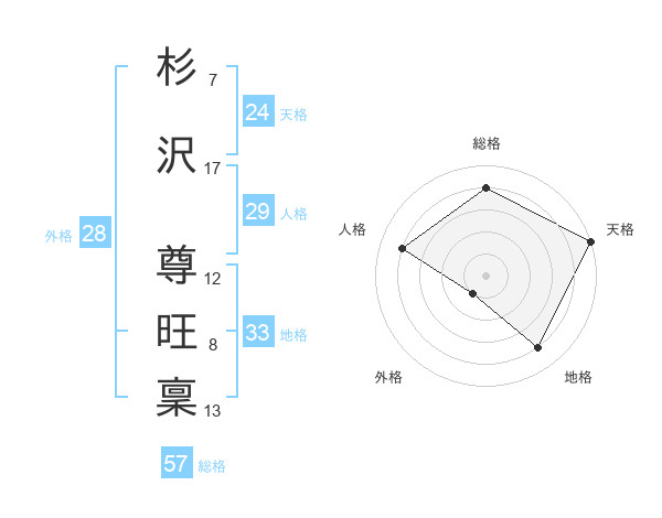 杉沢 尊旺稟さんを姓名の画数から五運を鑑定