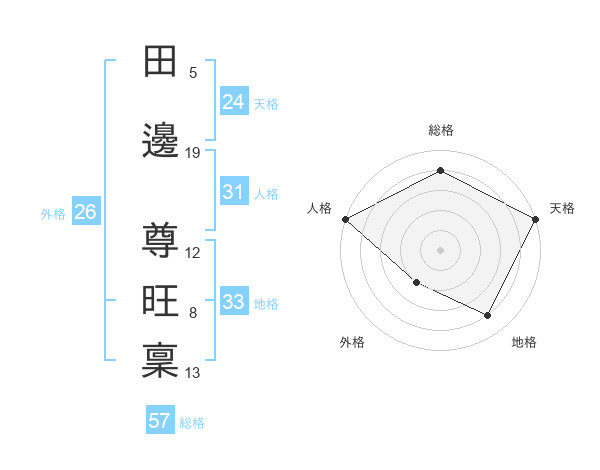 田邊 尊旺稟さんの総格は57画の4点!