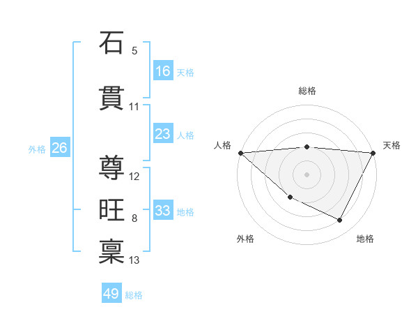 石貫 尊旺稟さんを姓名の画数から五運を鑑定