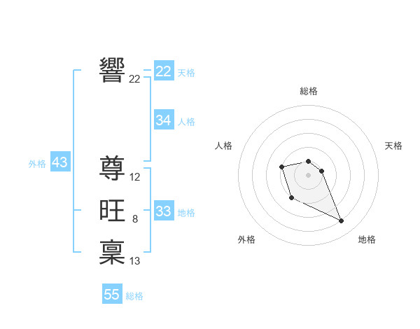響 尊旺稟さんの天格は22画の1点!