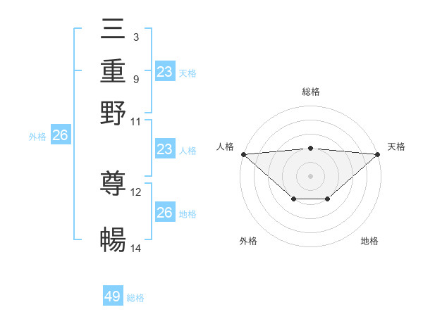 三重野 尊暢さんを姓名の画数から五運を鑑定