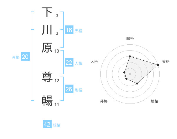 下川原 尊暢さんの地格は26画の2点!