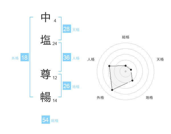 中塩 尊暢さんを姓名の画数から五運を鑑定