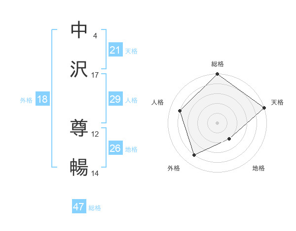 中沢 尊暢さんの天格は21画の5点!