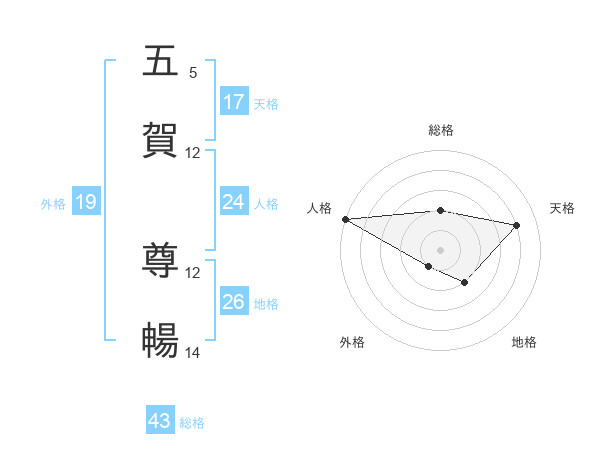 五賀 尊暢さんを姓名の画数から五運を鑑定