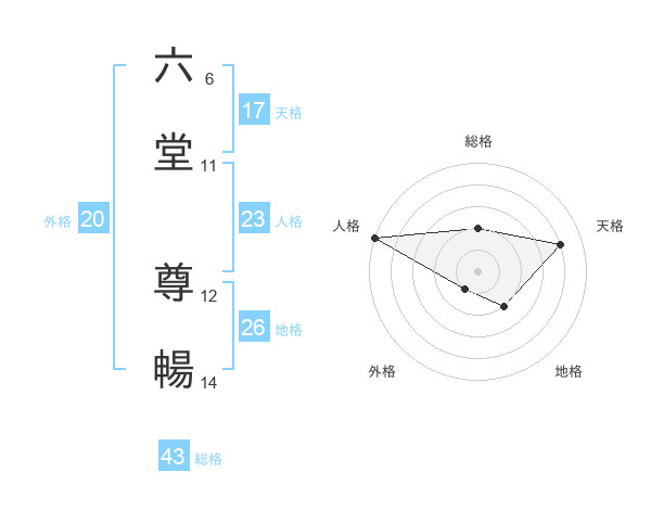 六堂 尊暢さんを姓名の画数から五運を鑑定