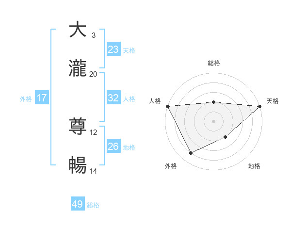 大瀧 尊暢さんを姓名の画数から五運を鑑定