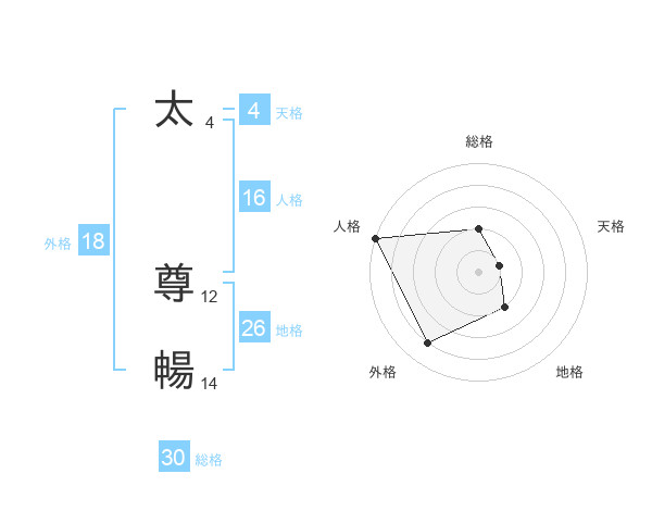 太 尊暢さんの外格は18画の4点!
