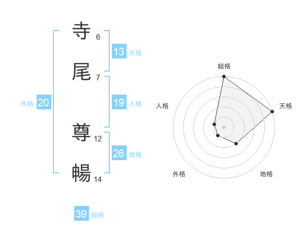 寺尾 尊暢さんを姓名の画数から五運を鑑定
